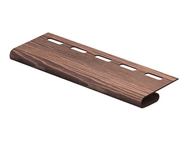 Завершающая планка применяется для завершения горизонтального участка, фиксирует обрезанный край последней полосы сайдинга. Места установки завершающей планки: под карнизом, с околооконной планкой.